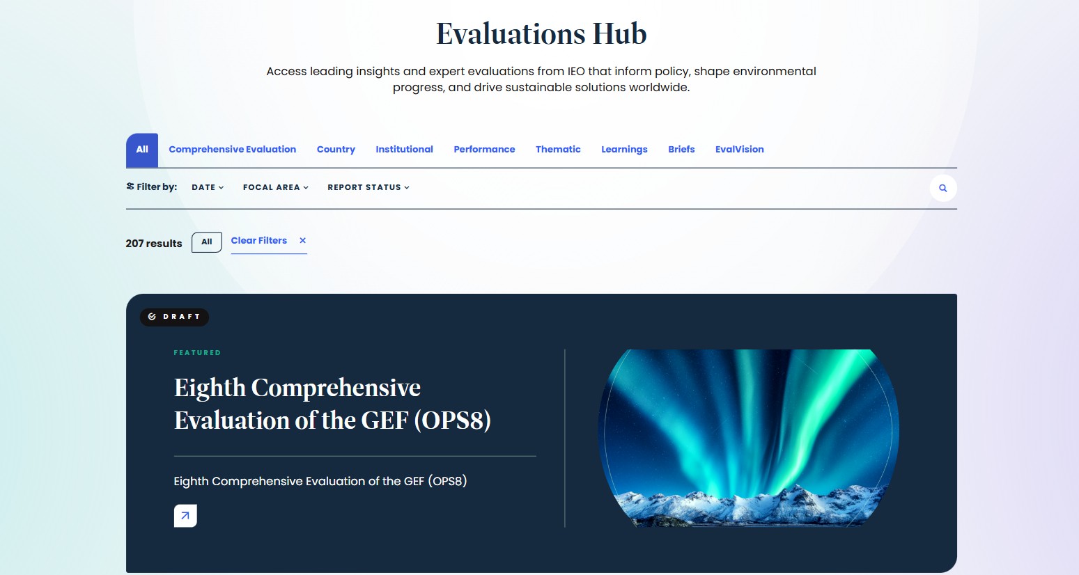 - Evaluations hub for OPS8 and beyond: As we synthesize findings from evaluations across the GEF portfolio, the website will serve as a central platform for updates, insights, and interactive products that support GEF-9 replenishment and global learning.