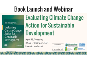 The webinar will focus on the publication of the book Evaluating Climate Change Action for Sustainable Development which had its genesis in the Earth-Eval following the Second International Conference on Evaluating Climate Change and Development. Some of you may remember this event from November 2014 that brought together about 300 leading experts and policymakers in the field to Washington, DC for 3 days. The book contains articles from the presenters at the conference who had topics on evaluations focused on adaptation, mitigation and policy issues.